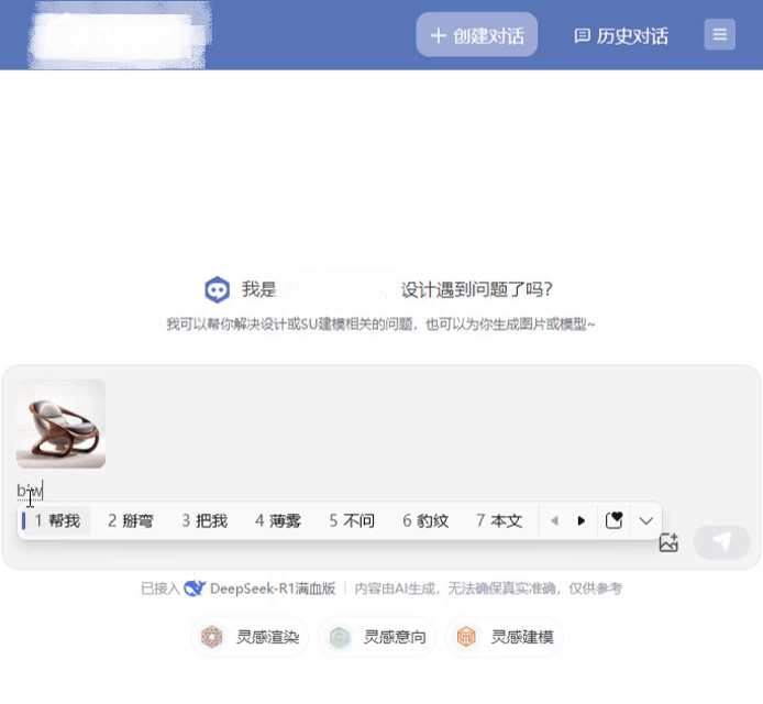 2025年的春天 從DeepSeek殺瘋了開始 廣電媒體、各大企業(yè)、眾多APP 紛紛宣布接入DeepSeek 甚至政務(wù)系統(tǒng)都在用AI公務(wù)員寫報(bào)告 然而,很多宣傳接入的公司 實(shí)際情況是…… 是的,DeepSeek很牛 但局限在于它只能輸出文字 不過小編已經(jīng)找到了一個 比DeepSeek更專業(yè)、更適合設(shè)計(jì)師的助手 輸入一句話,就能無痛建模 掃描二維碼 即可入群體驗(yàn)SUAPP靈感系列 既然能夠建模 渲染效果圖當(dāng)然也不在話下 小小文生圖 更是分分鐘拿捏 這跟雇了一個專業(yè)設(shè)計(jì)師有什么區(qū)別? 小編也是終于翻身了 成了建筑大師的甲方~ 再來考考它一些設(shè)計(jì)規(guī)范 好,根本難不倒它 這么厲害還有我什么事呢 不知道大家看了受不受得住 要不直接讓他替設(shè)計(jì)師上班算了 這脾氣,果然是專業(yè)設(shè)計(jì)師 一而再再而三受到AI打擊 不知道大家現(xiàn)在心情怎么樣 大家希望它還能為設(shè)計(jì)師做什么呢 或者想與哪位設(shè)計(jì)大師共腦? 一起來聊聊吧 ↓↓↓ |