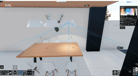 調(diào)整曝光度 給室內(nèi)添加燈光效果,將燈光放置于燈具的正中,調(diào)整顏色、亮度、錐角等參數(shù)。調(diào)整好后按住Shift+Alt鍵平行復(fù)制燈光于其它兩盞燈具中。