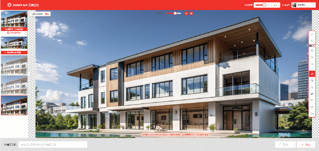 AI就如病毒式在設計院蔓延! 有人還在觀望,有人在抵制, 事實是目前國內各大省級、市級設計院、 老八校屬下設計院、 以及一些頂尖效果圖公司, 已經在用AI工作流了。 看看使用者怎么說? 用靈感渲染出圖確實香 為了回饋用戶喜愛 又來了一大波更新! 點擊圖片查看靈感渲染詳細介紹 SUAPP AIR “靈感渲染”,并不是一個真正的渲染器, 是已經調教好的AI神器。只需要簡單調節參數,它可以給你靈感閃現一個“渲染圖”,用以輔助推敲設計方案,提高前期方案階段效率,目前支持城市設計、建筑設計、景觀設計、室內家裝、室內公裝、手工模型、手繪插畫等等渲染類型。可以對模型粗稿、手繪線稿、現場照片進行渲染出圖。 #1風格庫已達500+種 已增加至50多種渲染類型、500多種渲染風格,包含建筑設計、室內家裝、室內公裝、景觀設計、手繪插畫等,且還在不斷更新中...... #2網頁版上線 SUAPP靈感渲染網頁版著正式上線:www.suapp.com/gallery 渲染更方便!手機、iPad、沒有安裝SketchUp的電腦也能快速渲染! 靈感畫廊(用戶分享作品) 點擊“創作”進入網頁版靈感渲染 #3全新編輯模式 更可控、更便捷、更全面的編輯工具集。掌握更為智能精準的控制權,享受前所未有的便捷操作體驗,以及全方位編輯工具功能。讓局部重繪和迭代渲染更加靈活可控,正式從單純的“AI生成圖”階段邁向“AI更可控編輯圖”的新紀元。 視頻一 視頻二 視頻三 編輯界面 編輯前 導入圖像后,可直接進入編輯模式處理,也可以渲染后再編輯。 編輯中 編輯模式包含了局部選擇、涂鴉手繪、魔法消除、修復人物、摳除背景、超清放大、擴圖裁剪以及氛圍參考的功能,在編輯模式下也能隨時渲染。 在編輯模式下,每次編輯的步驟將作為記錄保留在左側窗口,可隨時查看回溯記錄,且可以保存到本地。編輯后 點擊完成退出編輯模式后,只保留最終結果(相當于PS合并圖層)。 在該界面可以使用迭代渲染、分享圖片、鎖定靈感、鎖定材質等功能,也可再次進入編輯模式處理圖像。編輯功能 局部選擇?? 想對圖像進行局部渲染,就可以使用選擇工具渲染指定渲染位置。