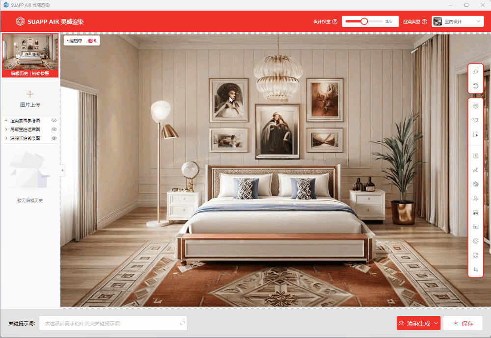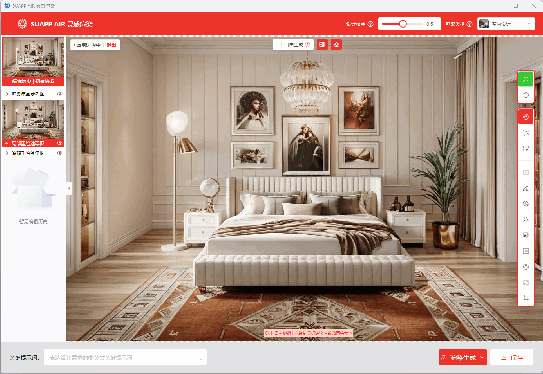 奔走相告!靈犀風(fēng)格更新啦! 推出編輯功能! 可以擴(kuò)圖、輸入?yún)⒖紙D、局部重繪... 今天給大家詳細(xì)介紹一下 自由生成在家裝公裝中的實(shí)戰(zhàn)應(yīng)用 效果不太滿意,想要局部調(diào)整一下怎么做呢? 動(dòng)圖展示 ① 選擇靈犀風(fēng)格里合適的風(fēng)格,并進(jìn)入編輯模式。 ② 選擇畫筆后涂抹需要修改的位置,這里把沙發(fā)和茶幾一起涂抹修改了。 ③ 輸入關(guān)鍵詞“白色沙發(fā)”,并勾選“自由生成”。 ④ 點(diǎn)擊“渲染生成”,修改完成。 沙發(fā)就修改為白色床啦,不滿意還可以再次修改。 動(dòng)圖展示 ① 進(jìn)入編輯模式,選擇畫筆,涂抹需要更改的位置。 ②選擇理想的參考圖,再輸入關(guān)鍵詞“床”。 ③ 換一個(gè)合適的風(fēng)格。 ④ 勾選自由生成。 ⑤ 更改完成。 動(dòng)圖展示 ① 進(jìn)入編輯模式,選擇畫筆,涂抹需要更改的位置。 ②選擇理想的參考圖,再輸入關(guān)鍵詞“沙發(fā)”。 ③ 勾選自由生成。 ④ 更改完成。 修改就完成啦,這樣的效果就十分滿意了~ 更改前后對比 公眾號后臺回復(fù)“試圖” 即可入群體驗(yàn)SUAPP靈感渲染 按照以上家裝自由生成過程,進(jìn)入編輯,選擇畫筆工具涂抹想要修改的區(qū)域,再導(dǎo)入?yún)⒖紙D,輸入關(guān)鍵詞“盆栽”,勾選自由生成,開始渲染后,盆栽生成。 具體操作過程示意 同理,如果有不滿意的地方,想對某一塊墻面進(jìn)行修改,選擇畫筆工具,涂抹想要修改的地方,勾選自由生成,則可以一鍵完成修改。 具體操作過程示意 和上面類似,可以利用參考圖加關(guān)鍵詞控制自由生成的結(jié)果,使用畫筆涂抹需要修改的位置,輸入?yún)⒖紙D和關(guān)鍵詞,點(diǎn)擊渲染,修改完成。 具體操作過程示意 以上就是自由生成在家裝、公裝中的實(shí)際操作 新功能更可控!更方便!更高效! SUAPP靈感渲染功能強(qiáng)大,操作簡單 此外還有500多種風(fēng)格可以選擇 獲取/使用方式 使用方式:SUAPP插件庫內(nèi)置插件 使用條件:購買SUAPP會(huì)員+靈感渲染 支持系統(tǒng):Windows、MacOS 軟件版本:支持SketchUp 2017+,推薦SketchUp2020+ 支持設(shè)備:1臺電腦創(chuàng)作,可更換電腦 使用步驟: 1、下載安裝SUAPP:www.suapp.com/download 2、購買SUAPP會(huì)員+靈感渲染:www.suapp.com/air-member 3、在SketchUp里啟動(dòng)SUAPP,登錄賬號,即可使用靈感渲染。 掃碼加群體驗(yàn) 進(jìn)群可以免費(fèi)體驗(yàn)靈感渲染~如果你有什么好的AI作品,或是有什么想法,歡迎大家加入專屬的AI設(shè)計(jì)討論群,我們也會(huì)在群里分享AI相關(guān)的最新資訊! 官方指定入群通道 ▼ 免責(zé)提示:文中部分圖片來源網(wǎng)絡(luò),由我方原創(chuàng)整理,版權(quán)歸原作者所有;若侵犯到您的權(quán)益,請聯(lián)系我們處理,謝謝! |