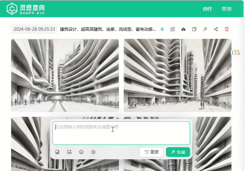 是誰還在為設(shè)計前期找不到意向圖發(fā)愁? 是誰因為意向圖不盡人意而抓耳撓腮? SUAPP靈感意向解決您的煩惱! 僅需簡單三步就能生成相關(guān)意向圖 輸入主體、環(huán)境提示詞 ? 深化細節(jié)、環(huán)境、氛圍提示詞 ? 發(fā)散得到的靈感圖片 非常適合前期尋找設(shè)計靈感 視頻演示過程 ① 提示詞生成意向圖 根據(jù)初步設(shè)計條件輸入提示詞: 簡約中型辦公樓, 幾何形狀輪廓,城市環(huán)境 ② 提示詞增補 如果我們有更具體的想法可以繼續(xù)在增添提示詞: 繼續(xù)調(diào)整增補提示詞: 明黃色外掛旋轉(zhuǎn)樓梯,白色豎向片墻分割,垂直綠化,行走的人群 ③ 意向發(fā)散 當(dāng)對生成的意向圖比較滿意時,可以進行“發(fā)散”; 希望變化小一點的時候可以選擇“輕度發(fā)散”; 希望變化大一點的時候可以選擇“創(chuàng)意發(fā)散”。 公眾號文末掃碼 即可入群了解SUAPP靈感意向 其他案例 案例1: 在之前的基礎(chǔ)上增添提示詞: (原提示詞)+紅色穿孔板,多層建筑 繼續(xù)調(diào)整提示詞: 矩形豎向開窗且錯落有致,露臺,通透的紅色穿孔鋁板,多層建筑,底層為通透的玻璃幕墻,漂浮感,行走的人群 用最后這張圖片進行靈感發(fā)散 案例2: 在之前的基礎(chǔ)上增添提示詞: (原提示詞)+木質(zhì)豎向分割 繼續(xù)調(diào)整提示詞: 木質(zhì)豎向片墻分割立面,黑色金屬樓板,多層建筑,行走的人群,垂直綠化 用最后這張圖片進行靈感發(fā)散 最后再來欣賞一下靈感意向生成的精美意向圖吧~ 關(guān)鍵詞控制意向圖 意向圖靈感發(fā)散 掃碼加群了解 如果你有什么好的AI作品,或是有什么想法,歡迎大家加入專屬的AI設(shè)計討論群,我們也會在群里分享AI相關(guān)的最新資訊! 掃碼加好友邀請進群 ▼ |