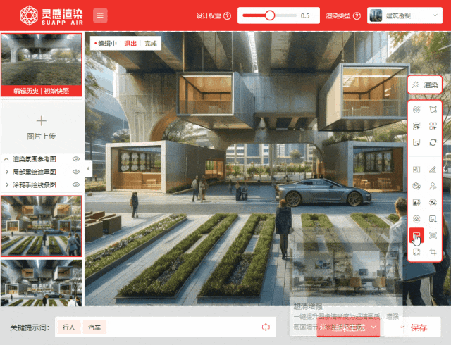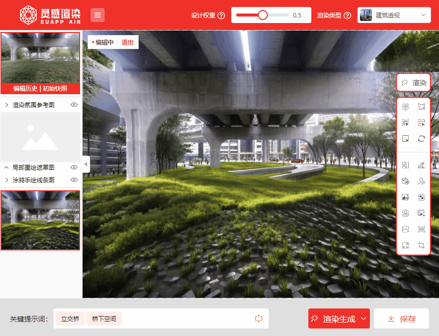 城市發展過程中 存在許多相對消極的公共空間 在小編回家的路上就有一塊 比較枯燥的橋下空間 今天我們就來試著用 來對它進行改造升級吧! 視頻過程 https://www.bilibili.com/video/BV15H4Be4E1s 全程只使用SUAPP靈感渲染制作 僅耗時10分鐘 圖文過程 2、使用【圖片拼貼】功能,導入我們初步設計好的線稿,拼貼后使用局部重繪只渲染拼貼部分,關鍵詞:集裝箱建筑,咖啡廳。 3、【局部重繪】選出周邊環境,地面鋪裝,勾選【自由生成】,關鍵詞:集會,公園,商業廣場,硬質鋪裝,景觀綠化。 5、使用【氛圍遷移】功能,導入氛圍參考圖,點擊氛圍遷移 6、最后使用【超清增強】和【無損放大】,給圖片增加億點點細節。就水靈靈的完成了! 其他橋下空間 以上效果均由SUAPP靈感渲染快速制作 掃碼加群體驗 進群可以免費體驗靈感渲染~如果你有什么好的AI作品,或是有什么想法,歡迎大家加入專屬的AI設計討論群,我們也會在群里分享AI相關的最新資訊! 官方指定入群通道 ▼ 免責提示:文中部分圖片來源網絡,由我方原創整理,版權歸原作者所有;若侵犯到您的權益,請聯系我們處理,謝謝! |