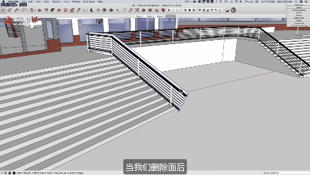 4、刪除了多余線面后,有時會出現欄桿表面很不光滑的現象。這時我們只需將它們全部框選后右鍵使用柔化/平滑邊線就可以了。